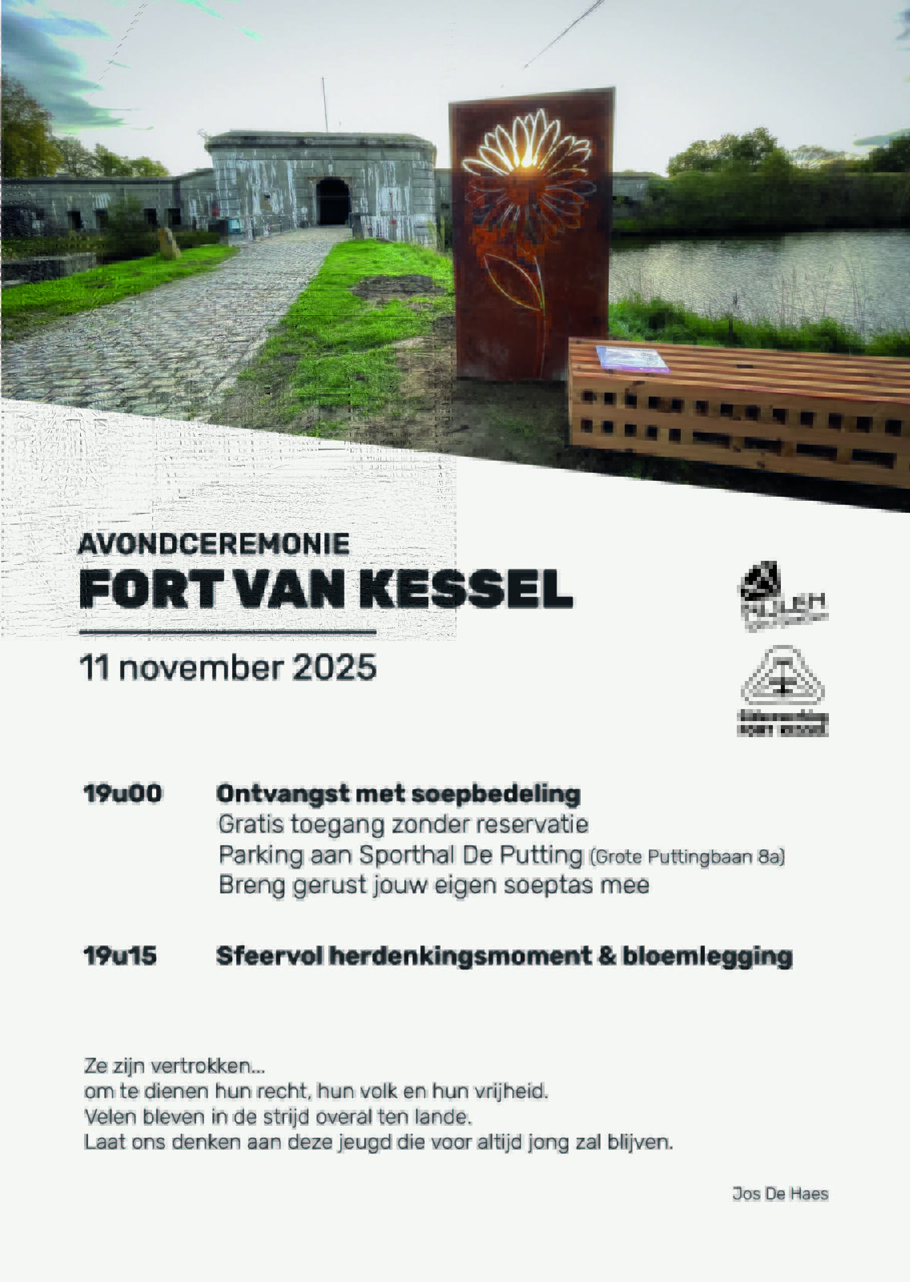 Herdenking wapenstilstand Kessel Fort Ontvangst met soepbedeling met soepbedeling vanaf 19.00u. Aanvang om 19.15u.